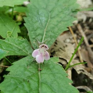 ヤマジオウ.山地黄 シソ科 分布…関東地方(太平洋側) 四国、九州 草丈5~10㌢ 葉の長さ3~7㌢程 幅…2~3㌢程 大きな葉っぱの上に ちょこんと 咲いてる姿が お茶目で 可愛い~です😍 花言葉は謙虚* 7月末 大分県…くじゅうで⛰️🤳