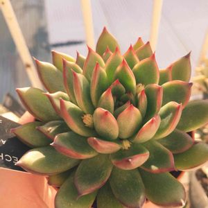 一目惚れして買ってしまったけど…。 なかなかの大きさ! プレステラ105じゃきびしそう(・`ω・) 近所のお花屋さん 600円 図鑑にはクリスマスがプリドニスグリーンフォームの名前で流通している とのこと。 でも図鑑のクリスマスはアエオニウムみたいなヒラヒラしたかんじ。 クリスマスイブに似てるけど7センチくらいまでだから違うぽい。 むむむう( ´෴` )