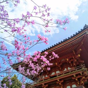 京都♡ひとり旅 仁和寺の御室桜♡ まるで桜の雲海🌸🌸🌸 京都で最後に咲く桜です ミツバツツジも咲いていました♪