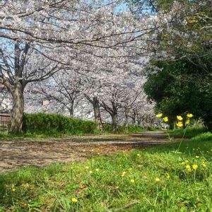 満開の桜と 🍀馬の足形🍀 何時もの散歩道です🚶 今年は一緒にお花見 出来ないネ〰💧 知人と互いの写真を 送信しあいました🌸📱