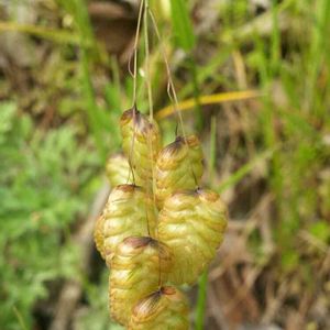 コバンソウ🌿小判草 細い茎の先端に 小判の形に似た小穂が ゆらゆら🍃 さやさや🍃 風が止むのを待って パシャ📱 近くの川の土手で📷