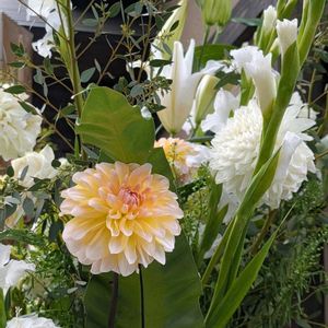 今晩は 色んな花の間から咲いた白のグラジオラス綺麗ですね٩(๑❛ᴗ❛๑)۶٩(๑❛ᴗ❛๑)۶