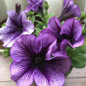 ペチュニア NOW! 雨が本降りなので☔️小降りになるまで一時お部屋で待機。 蕾達も咲きはじめとてもイイ感じです🌸