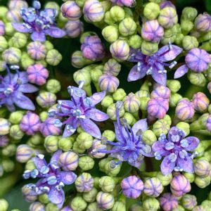 昨夕からの雨☔️が本降りです💧💧💧 日陰の挿し木の紫陽花の中で、きれいにブルーになってる花をカットしてきました( ◜◡^)☂️っ✂︎ஐ❁ஐ 冷酒の 透明ブルーの空きビンに差したら、さわやか〜 (✻´ν`✻)