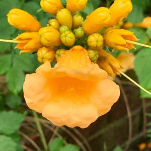 ご近所の玄関先に咲いていました。 変わった花の房ですね。