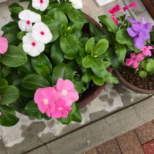 ニチニチソウとインパチェンス並べて📷 ボリューム出てきた!ぐふふ😆