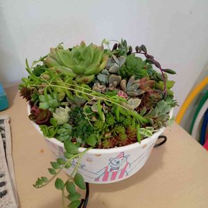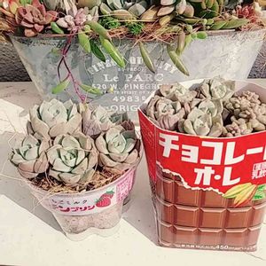 ミスドのカップに寄植え✨🌱✨🌱✨🌱✨ これは詰め放題ドーナツポップのMサイズ🎵 寄植にちょうどいい大きさでした🎵