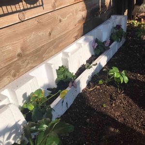 何でも使ちゃえ グリーンインテリア 液晶テレビの衝撃感傷剤の 発泡スチロールに パンジーを植えました。