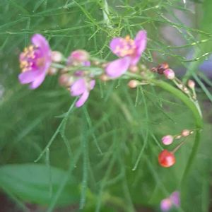 春と秋 可愛いピンクの花と 紅い実で楽しませてくれます🎶 我が家の柿の木の下に群生 可愛い姿に癒されます💕 葉は天ぷらや胡麻和えに 美味しいとか😅 未だ食した事は無し ハゼランの花と実