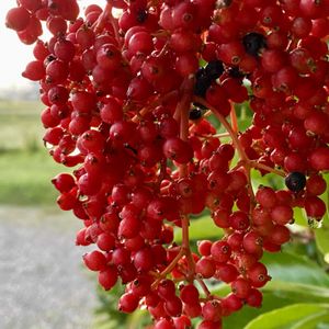サンゴジュ(珊瑚樹) 7/29に投稿したサンゴジュの実 去年は紅くなる前にたくさんの実が落ち、がっかりしましたが、 今年はなんとか落ちずに元気に赤く染まっています。 暑さに負けずにしっかり生きてて なんだか嬉しい