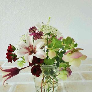 知人に上げるために庭の花を摘みました🏵 中々可愛い組み合わせになったところをパチリ📱 クレマチス プリンセス・ケイトの蕾がお洒落だなぁ💕 今日でGS3年生になりました😊 引き続き宜しくお願いします🙏😆
