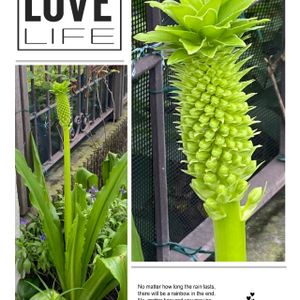 おはようございます😊 パイナップルリリー🍍 キジカクシ科ユーコミス属 ご近所のフェンスと歩道の間に植えてありました‼️ 初めて見たのですが…大きなお花ですね〜❣️ 咲くのが楽しみです🎶✨😍