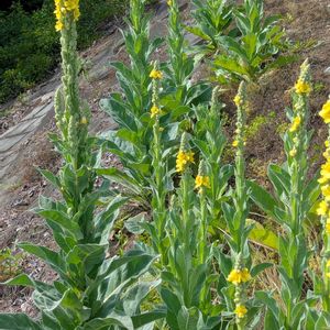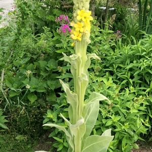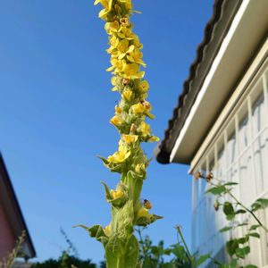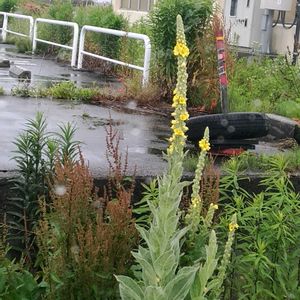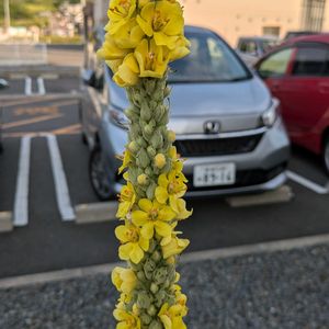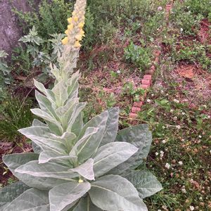 ビロードモウズイカ 高さ2メートル以上にもなる大きな毛深い葉っぱの2年生植物〜こぼれ種から今年やっと開花しました💛