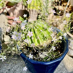 サボテンの鉢に ミニのかすみ草が!