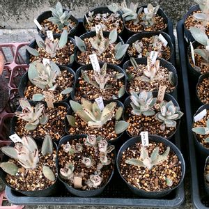 おはようございます😊 ☀毎日暑いね 👿今日頑張れば仕事は4連休 🚘長野県へ行く予定です 🏷️ぐんぐん祭り 1️⃣アラモアナ(ステファン苗小苗) 2️⃣スターダスト(メッテニー錦変異種小苗) 3️⃣ファング(カランコエ小苗) 4️⃣ビッグバード(カランコエ小苗) 5️⃣ストライカー錦(センペル幼苗) 👿ストライカー錦が夏を越えてくれると良いけどね 🐰