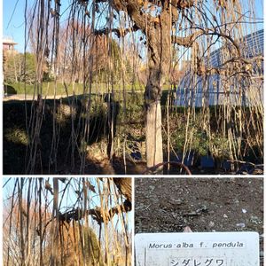みごとな枝垂れかたです😮😀 葉っぱがないので、よくわかります。シダレグワかぁ🤔 葉っぱがある季節にはどんな姿になるのか楽しみです(農業試験場内にて)