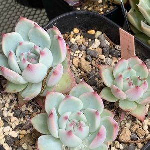 エケベリア 水蜜桃です。 購入して、2年か3年🤔 大きく育って、春の植え替えの時に モギモギして、葉挿ししていますが、全く動きがありません。 葉挿し🌱中々上手くいかないなぁ😔 大きくなりすぎた葉っぱだと、上手く出ないって聞いたような? そのせいか?