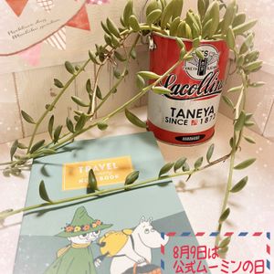 💙🩵 告知です 🩵💙 明日8月9日は公式ムーミンの日です 少し前から「ムーミンの日」は 毎月9日開催になりましたが 公式の「ムーミンの日」は1年に一回 作者・トーベヤンソンさんの お誕生日にちなんで制定されています いつものような 植物+ムーミンの投稿で構いませんが 皆さんでお祝いが出来たらいいな〜と 思っています 是非是非 よろしくお願いします☺️💕 今日は ネックレスの日🏷️ 毎月8日は鉢の日🏷️ 8日は葉っぱの発表会🏷️ で投稿させて頂きます🌿 鉢にしているのは 前にも投稿したことがありますが 滋賀のラコリーナ限定販売の お菓子(たねやの最中)の缶です ムーミンのノートは郵便局で買いました 2枚目 今日は何の日… ゾロ目の日は記念日が多いです 何故か 世界猫の日 だったりしますが 想像しやすいのでは ひょうたんの日 タコの日 などあります タコの日に合わせて ちいかわタコ🐙たちを並べてみました♪ 3枚目は 葉っぱの発表会なので アーモンドネックレスを アップで撮ってみました 一時期日当たりの良い場所に 置いていたら 茶色っぽくなってしまったのですが 直射日光の当たらない場所に移動したら 1ヶ月くらいで元の緑色に戻りました💚 先ほどうっかり 投稿したのを削除してしまいました😂 ♡くださった方がいましたね 申し訳ありませんでした🙇♀️