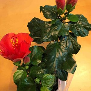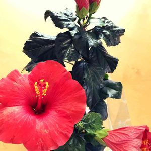 赤いハイビスカス🌺 雨の中☔️咲いてくれました😊