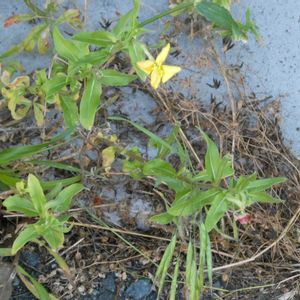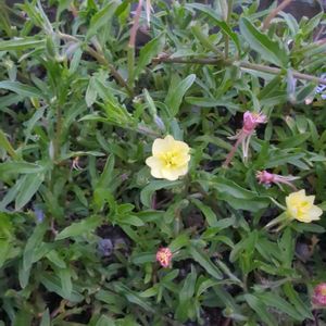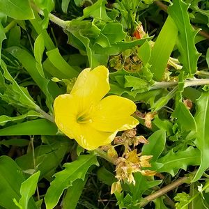 コマツヨイグサ ここでも帰化植物が勢力を伸ばしていました🌿🌿🌿 アカバナ科 マツヨイグサ属 北米原産 帰化植物 二年草 草丈は20 - 60cm 茎はよく枝が分かれ、斜めに立ち上がって、立った毛が多い。 匍匐性(茎や枝が地面をはうように伸びる性質)がある。 花期は初夏。 花は径2 - 3 cm、子房下位。 花弁は4個で、横径は1 cm前後、色は淡黄色で萎れると赤く変化する。 萼の下部は長さ2 cmの筒形になり、淡緑色で、萼片が4個ある。 子房は円柱形で、果時においては長さ1.8 - 2.5 cmになる。 果実は先の方が太く、浅い4本の溝があり、斜めに立つ毛が多い。 種子は長さ1.2mmほどで、滑らかで角張らない。 夕方から朝方までしか咲かないので、日中は、ショボショボとしか咲いていませんね😅💦 ⚠️鳥取砂丘を緑化し、また在来種と競合し、在来種の数を大きく減らし、生態系を崩すことから外来生物法により要注意外来生物に指定されているそうです。