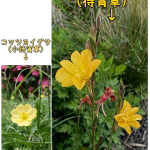 ★マツヨイグサ(待宵草)★ ★コマツヨイグサ(小待宵草)★ アカバナ科の越年草 花期:5〜11月 ー似たお花ー ※マツヨイグサ(待宵草) 花:直径6㎝、萎むと赤くなる。 草丈:50~100cm直立し赤味を帯びる。 ※コマツヨイグサ(小待宵草) 花:直径3cm、花弁の基部は赤くならない。萎むと赤くなる。 草丈: 5~50㎝、地を這い広がるように生える。 ※オオマツヨイグサ(大待宵草) 花:直径6~8cm、萎んでも赤くならない。 草丈:80~150㎝、直立。 ※メマツヨイグサ(雌待宵草) 花:直径は2~5cm、萎んでも赤くならない。 草丈:30~200㎝、直立し赤味を帯びる。 マツヨイグサ 2025.4.26 実家近所にて📱 コマツヨイグサ 2025.5.23 自宅近所にて📱
