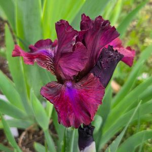 バウンス 2025-04 IB Bounce ジャーマンアイリスでは珍しい赤系の品種です! ジャーマンアイリスは純粋な赤は色素の関係で存在しませんが、最近は赤に近いが品種品種改良によって作られています👍 バウンスも赤というよりは赤紫色ですね!ヒゲ周りの紫色が好みです😍😍