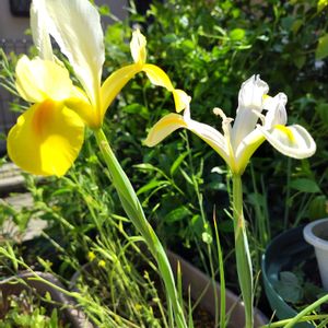 ①2年目のアイリスが咲きました *\(^o^)/* 今日のお昼に見た時は、まだ、つぼんでいましたが… 風で首がぶんぶんしてたので、支柱で支えてあげましょう!とやさしい気持ちでぶすっと刺したら、あちゃー!球根にささった? 土の硬いところにあたっていたんだといいのですが💧 ②③放置のラベンダー その1 ④⑤放置のラベンダー その2 あちこち伸びた放題の枝を見るたび、花後どうしたらいいかわからず放置してしまった鉢植えのラベンダーたちに、今年はしっかりお勉強して、剪定せねば、と反省するのでした💧