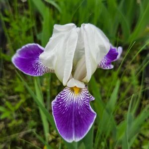 白&パープル 2025-43 MTB あまり数が多くないミニチュアトールビアデッドと呼ばれるグループの品種ですね!花はドワーフアイリスと同じくらいのサイズですが、草丈がやや高めなのが特徴的です!