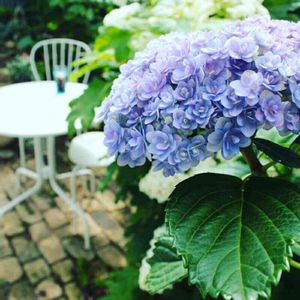 アジサイとガーデンテーブル&チェアとの好きなアングル。 今年も撮れた☺