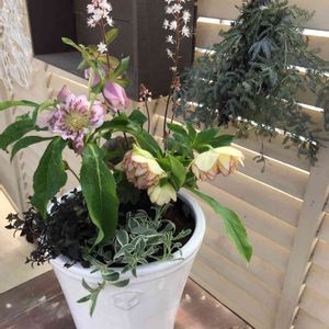 2月の寄せ植え教室 hanaプラ クリスマスローズの寄せ植えを作ってきました クリスマスローズは沢山ある中から選べました イエローにピンクの縁取りがあるものと ピンクのダブルで斑入りのあるものを選びました 他に合わせる苗は ティアレラ ベロニカ オックスフォードブルー シレネ ユニフローラ 覚書↓ クリスマスローズは3月半ば頃 緩効性肥料を与えるのを忘れないように 植え替え時期は11月 古葉を切るのは11月頃 地際から1〜2センチ上で切る 冬は日なた、夏は日影に置く