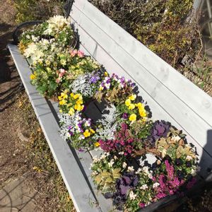 リース水やり風景 リースは立てたまま水やりタブーなので 横に寝かせてゆっくり、たっぷり水やりです