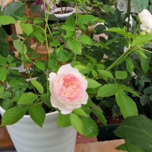 何とも久し振りの投稿😅 今年買った小さな苗ですが、『アムール ドゥ ランジュ』が初めて花を咲かせました✨ まだまだ花弁の数が少ないですが、優しい色合いが可愛らしい💕
