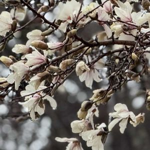 🏷️今日のお花 コブシ 昨日の朝、雨の合間に散歩へ🐩🚶♀️ ヒョウ?が降る前に 近くの公園にて。 帰宅後、雷鳴と共に凄い音がして 外を見ると、あっという間に ヒョウが積もり初めて 辺りは真っ白、冬景色となりました。 こんな経験は初めてでした。 ヒョウだけで10センチ越え😱 長く降り続いた後は雪に変わりました☃️ 降り始め10分足らずで、🚗🙅 仕事に行く事を断念しました😅💦 ヒョウに叩かれて庭木の葉っぱが散っていました。 満開だったサクランボの枝も花弁を無くし ミモザの枝はしなだれてしまった! やっと咲き始めたコブシの花はどうなっただろう⁉︎ 夕方の散歩🐩🚶♀️で会った 小学生の女の子に、 可愛いワンちゃん❣️ 足跡も🐾かわいい😍と、言われ 思わず照れてしまったバカイヌシでした😅 私はひとつ忘れていた! エンドウ豆🫛の苗を、一昨日 畑に定植したばかりだった事を😱💦💦 畑に見に行くのが怖い😰 急遽、休みとなりGS三昧❣️ と思ったら、暫く投稿が出来ず 投稿用picばかりが増えました! 🤣