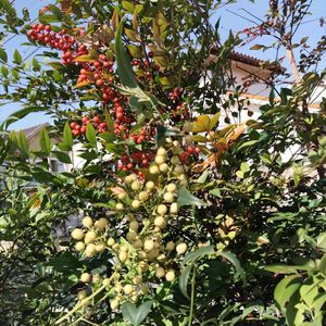 おはようございます😊 ナンテンの実が紅白で 綺麗に❤️🤍 散歩道🚶♀️で。。。