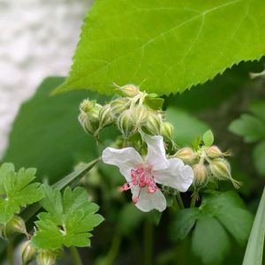 おはようございます✨ 今朝の庭から… ①ゲラニウム・ビオコボがアナベルの葉影で一輪開花していました🎶 ②ピエールドゥロンサールのつぼみ♡ ③新雪のつぼみ♡ ④サラサドウダンツツジ♡ この木は山野草コーナーの日除けとなってくれています🌳🌿🌿 最低気温12℃ 最高気温18℃ 雨時々くもり