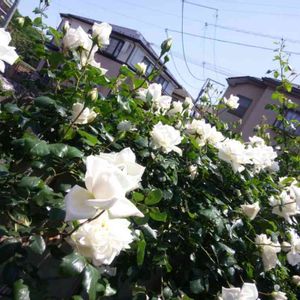 こんばんは«٩(*´ ꒳ `*)۶» 今夜も昔のお庭のバラさんを... 先日投稿しました昔の花壇「ホワイトガーデン(仮)」の風景の一画を担っていらっしゃったバラさんです。 純白でボリュームのある大きなお花を咲かせてくださいます。 雪があまり降らない土地で咲く、この子は新雪さんです( ˶ˆ꒳ˆ˵ ) お隣のつるアイスバーグさんと共に、日当たりが悪くなった花壇で今も元気に活躍されています。 アイスバーグさんに比べて倍くらいの大きさを誇るお花ですから、共に咲き乱れた時は凄く見応えがあります✧︎◝︎(*´꒳`*)◜︎✧︎˖ といいましてもアイスバーグさんの方が先に咲きだしてしまいますので、なかなか同時には咲きそろってはくださいませんけどねΣ(ノ≧︎ڡ≦︎) この子はとっても太いシュートを出して一気に2m以上に育ちます୧⃛(๑⃙⃘⁼̴̀꒳⁼̴́๑⃙⃘)୨⃛ とげは大きくて狂暴ですから、つるバラと言えど小型のアーチには向かないと思います。 広いフェンスか壁面につるを這わせるのがわたしには精一杯です( ฅ ω`)~゚ そんなバラさんですけど、高いところで咲いてくださったお花からは素敵な香りが降り注がれるんですよ(〃ω〃)♡︎♪︎ 花数ではつるアイスバーグさんにはかないませんけど、この子の方がよく香りますので少ない花数でもアイスバーグさんと同じくらいの面積を香りで包んでくださいます✧︎◝︎(*´꒳`*)◜︎✧︎˖ 木が若いころは春にしかお花を楽しめませんでしたけど、年を重ねるごとに晩秋まで返り咲いてくださるようになりました。 昨シーズンは1月までお花を楽しめていましたよ( ˶ˆ꒳ˆ˵ ) 珍しく雪が積もった日に新雪さんが咲いていらっしゃったので雪と新雪さんで花遊びしていましたしΣ(ノ≧︎ڡ≦︎) この子もバラさんを育てはじめた年にお迎えしたバラさんです。 新苗から育て始めてもう10年以上の付き合いになる古いバラさんです。 日当たりは悪くなりましたけど、これからも沢山のお花を楽しませてくださるようにお世話してあげたいと思います(´,,•ω•,,)♡︎ こんばんも、グダグダの投稿を最後までご覧いただきましてありがとうございました(〃ω〃)♡︎♪︎
