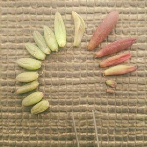 前に解体現場から 拾ってきた葉たち 朧月かなぁと思うのだけど… 水耕栽培の方は無事発根! 葉挿しも発根まで時間はかかったけど 出だしたら早い‼️ 成長も早い‼️ しかも、驚異の発芽率‼️‼️ とりあえず ぽいっとした葉 全てから芽と根が出ました´◡` 100%❤️ このあたり 強健種らしい(*´艸`)