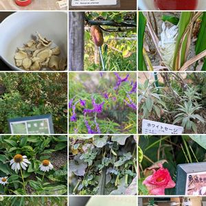 Googleフォトが「薬草園」と題してコラージュしてくれました🍀😊✨2022年10月22日🌿あいち健康の森で、薬草茶の試飲をしながら、「生活習慣病と薬草茶について」お話を伺い、秋の薬草茶🍁を見学しました( ^^) _旦~~🍵 ザクロ🔴秋、春のウコン茶☕ 愛知県大府市