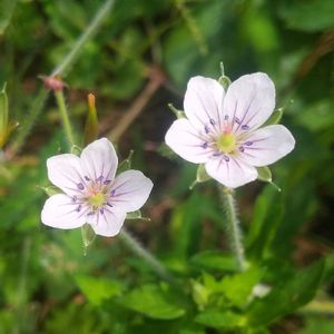 ♡💓ゲンノショウコ(現の証拠 )💓♡(5枚投稿) 昨年 庭のエゴノキの下に僅かに咲いた白色と紅色、今年は沢山の葉っぱを広げて咲いてくれましたが一輪白色にうっすらピンク🩷が入っていました٩(^‿^)۶ 受粉の時🐝になったのかな?🤭新種かなぁ〜?? ⚫︎フウロソウ科 フウロソウ属の多年草。 ⚫︎別名 フウロソウ、ミコシグサ、イシャイラズ 日当たりの良い道端や野原で見るゲンノショウコ。 東日本には白花、西日本には淡紅色、日本海側は紅色が多いそうですが境界線は昨年の投稿で聞いた限り微妙でした。皆さんの地域では何色のゲンノショウコが多いですか?? ちなみに福島は白花です。