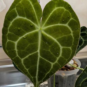 毎朝水やりは無理なので、休みの日にまとめて水やりをするスタイルです💦 大きめの鉢や背の高くなってしまった子はこうしてベランダに出して水やりをしてます😣 写真は一部で、まだ両端に沢山います💦 これで一時間… 部屋の小さい子達は、シンクで水やり… それは30分位🤔 簡易温室に入れてると水やりが週1の子も多くて、湿度ガンガンにしてるピクタムや小さい原種のアンスは2週間に一回位😣 大変だけど、成長を感じる楽しみを知るとなんてことない☺️ 久しぶりに綺麗なオーレアの葉が出て来たククラータ😊 サイズ感も葉柄短くて絶妙なバランス✨ ダサ巻したマグニフィカムもモリモリで可愛い😍 トムの新葉も赤黒くてツヤツヤ✨ 根っこもしっかり張って良い感じです🙆 先日、場所がないにも関わらずポチッとしてしまった、原種アンスのカリブレイリー☺️ 凄く悩んだのですが、調べたところ成長すると、葉っぱがウネウネするらしく可愛いと思いポチり💦 最近アンスリウムでも、葉っぱが割れるタイプが気に入ってます🧐 こういうワイルドな感じなのたまらんわぁ🥰 昨日の夜中に加湿器を倒してしまい、床に敷いたラグがびしょ濡れになったので憂鬱でしたが、植物に癒されてどうでも良くなりました😂