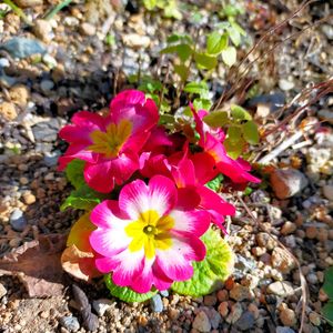 ど根性プリムラジュリアンが久しぶりに花を付けました✨ 園芸を始めたてで、何を育てるのも初心者だった頃(5年以上前だと思います)、霜にあてたら枯れてしまうかもしれないプリムラジュリアンを地植えしました。たくさん咲くこともなく、一年目の春を終え、夏に消えそうになりながら耐え、何度かの春を迎え・・・・ 咲いても弱々しい花を数輪しか咲かせたことがなく、何度も消えてしまったと思っていたのですが、今年の暖冬で急に元気を取り戻したようです☺大きな花をこんなに咲かせてくれました✨葉も少なく不格好ですが、とっても健気に咲いて、愛おしく感じます💖