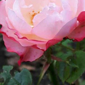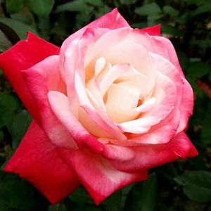 こんにちは😊公園の薔薇を紹介します 薔薇、丹頂です🌹アイボリーにローズ色の覆輪のお花です✨✨ 名前はこの花色が鶴のタンチョウを連想 させる事に因むそうです。 とても大きくて立派なお花でした💕✨✨