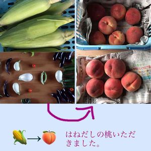 昨日アップした野菜たち、🍑を出荷されている方より籠を持っていらっしゃいと言われて、寒冷地であるうちの山で採れたとうもろこし🌽、ナスなどの野菜類を持って行き、🍑をいただきました。 ずっしりとした🍑 傷があったり、斑点があると贈答品にはならないそうです。 ありがたく、いただきました。 🍑一個食べてしまった‼️ので、13個もくださったのです。