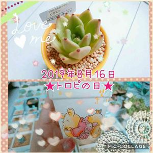 こんにちは*˙︶˙*)ノ 台風が近づいております札幌です🍃🌀☔ 朝からせっせとベランダの多肉ちゃんを全て寝室に避難させました! 多肉棚はしっかり固定していて倒れる心配はないはずなので、カバーして雨から守ろうかと思いましたが… 本日から開催されるRISING SUNなどのイベントも、初日中止を決定したりなどして警戒されていたので、よほどやばいのかと思ってね💦 RISING SUN、2年前売り子のバイトしに行ったなー( ¯∀¯ ) B'zの生歌、グッズの販売ブースまで聞こえて、ニヤニヤしたなー(笑) そんな台風の日ですが、本日はトロピの日です❤ なのでpicは、先月のモニター賞で頂いた苗の1つ、ピグレト❤ 美人さんな苗だよねー✧ฺ・。(✪▽✪*)・。✧ 本日描いたばかりのプーさんとピグレトの鉢に植えましたよ*˙︶˙*)ノ ピグレトをピグレットと読み間違った時点で、この絵を描こうと決めてたので、やっと描けて植えてあげられてよかった✨ 植えてあげるの遅れてごめんね💦 この1ヶ月、めっちゃ忙しかったのよ_:(´ཀ`」 ∠):_ もう1つの子の鉢も、プーさんの鉢と一緒に描いたので、夜に植えてあげます(*˙˘˙)♡ 近々picしよー❤