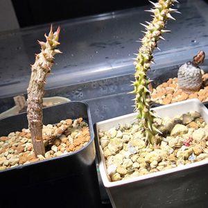 似た者同士の二株 でも攻撃力と防御力が高いのはゴッドレベイかな? パキポディウム属のご多分にもれず、バロニーさんはトゲの割にはフニャチンです😟
