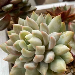 ライラックミスト (セデベリア属) 私の大好きな、磨りガラスっぽい質感のライラックミストさん🪴 お迎えした時に比べて、ピンク色に色付いてきましたよ~(*´˘`*)♡ 綺麗~(ㅅ´ ˘ `)♡ 早いなー💦 もう、4月ですね😅 今月もよろしくお願いします(❛ᴗ❛人)✧