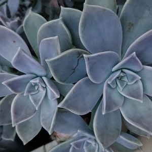 《多肉植物「朧月」》ダンディ邸にて 非常に丈夫で育てやすく、白粉をまとった灰緑色の肉厚な葉がバラのようにロゼット状に広がる🤭