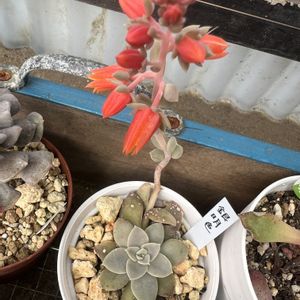 めちゃ太い花茎が出て来て開花しました💦💦💦 今年は初めてエケベリア種まき発芽まで成功しました この先はーどうなるやら 3枚目はウェルデルマニー 今は白いモケモケは脱いで お花も終わったところー 豪華な時は撮る暇無かったゴメン🥶😂 ピンキーは咲いてました 一時は茎ばかりになり 可愛く無かった 今年は日がテンテンの所に置いて 可愛くなりました 最後は センペル丼を買った時に入ってたもの 素敵なんですが 札が無いので何かわからない🤔☹️🧐 教えて下さい🙏