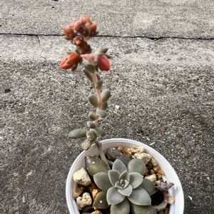 夏に縮めてしまいましたが それでも花芽ちゃんを上げてくれました😿💕 エケベリア・銀明色さん😻🤍🩷💛
