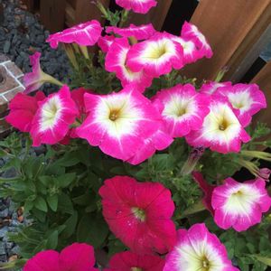 ペチュニア ブルーベリーマフィン 切り戻し後、咲き揃ってきました☺️💕 花が少し小ぶりだけど、元気です✨ 今日は職場の方が熱中症で救急搬送されました💦 大事には至らなくて良かったけど ハウスの中は40℃超え🌡 私も気をつけなきゃ💦